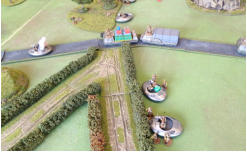 The game /continuedThe detour allowed Greenwood's infantry behind the hill near the junction, to pounce and again capture 2 trucks. However thanks to the fast mobility of the jeeps, the Slammers were able to once again counter assault and reclaim there trucks.The attackers pulled back, as 2 Combat Cars had been spotted approaching the battle. Unfortunately for Greenwood's vehicles the Combat Cars were still able to quickly destroy 2 of them. The other 2 attackers were able in return to immobilise and strip a tri barrel from 1 of the Combat Cars.By the time convoy reached the mine token on the rural road which turned out to be another dummy. The Slammers had pretty much broke the Greenwood's forces. They had suffered yet more bad luck, artillery strikes only yielding a fraction of potential damage and morale saves being failed. Whilst the Slammers were making there saves.A great game overall and reasonably balanced..